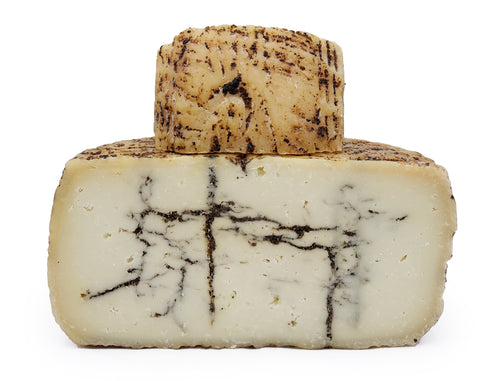 Fudgy and luxurious, Moliterno is still made seasonally from December to July using homebred cultures with curds that are then molded in handmade reed baskets. Unlike most truffle cheeses, Moliterno is aged for several months and then only the most flawless wheels are selected to become Tartufos. They are then sent to the Northern part of the island - truffle country! - to be injected with rich truffle paste. This results in the striking black veins visible when a wheel is cut into. Further aging then occurs, during which the wheels are also rubbed with truffle oil.