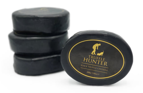 Every drop of milk that goes into this Truffle Cheddar is produced by grass-fed cows roaming in open pastures on the Isle of Man. The resulting cheese is carefully matured and blended with Truffle Hunter 's Black Summer Truffles, Tuber Aestivum. The result is a high quality, smooth-bodied and creamy cheddar with flecks of black truffle, allowing both flavours to express their natural complexities without overpowering each other.