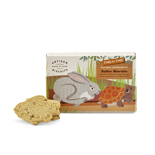 Made with pieces of British toffee, the biscuits are cut-out into charming animal characters, which are reflected in the box illustration.