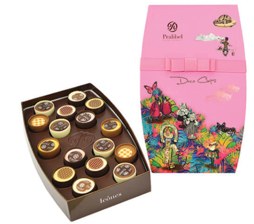 Belgian chocolates, beautifully presented in a gift box with pink ribbon detail. Flavours include caramel, passion fruit, hazelnut, raspberry, praline and strawberry, pistachio and blackberry, vanilla with lemon, and apple ganache. Contains 16 chocolates.