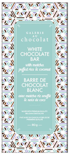 White Chocolate Matcha, Puffed Rice and Coconut Bar